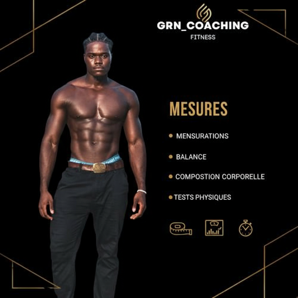 - Mesures : Mensurations détaillées (poitrine, taille, hanches, cuisses) + analyse corporelle (graisse, muscles, hydratation)